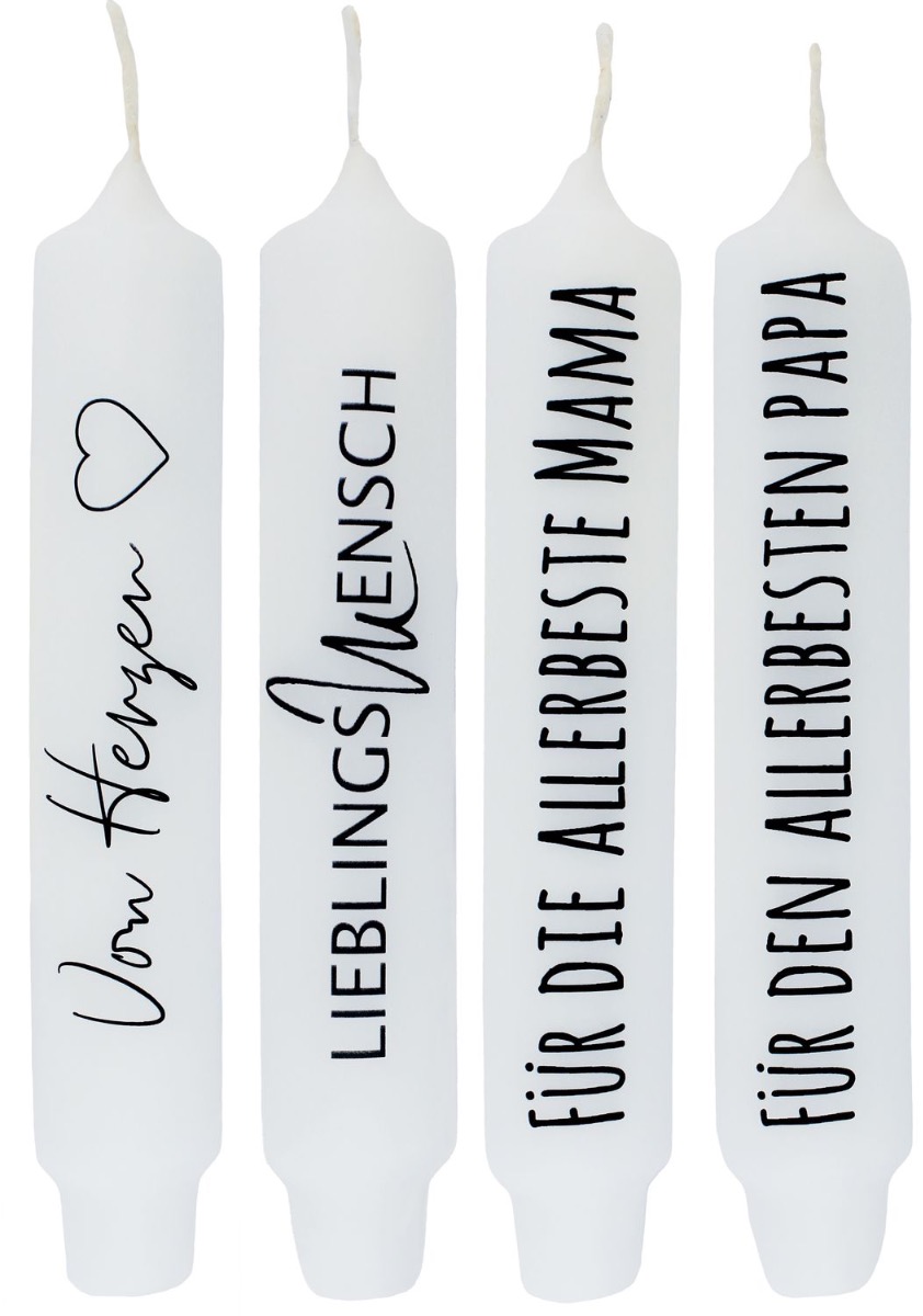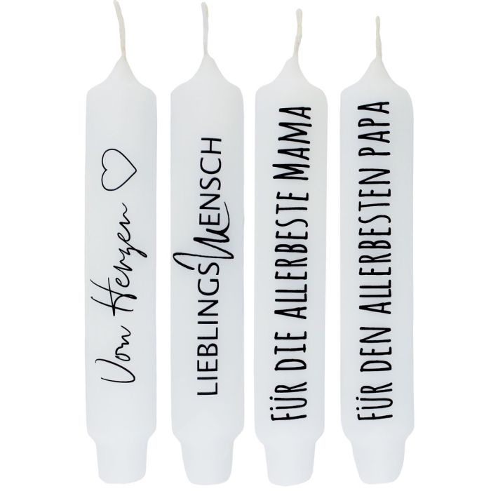 Candela punch con scritta KELANI, cordialità, 4 candele, 4 scritte, colorata, 16,5 cm, Ø 2,8 cm, 6 ore