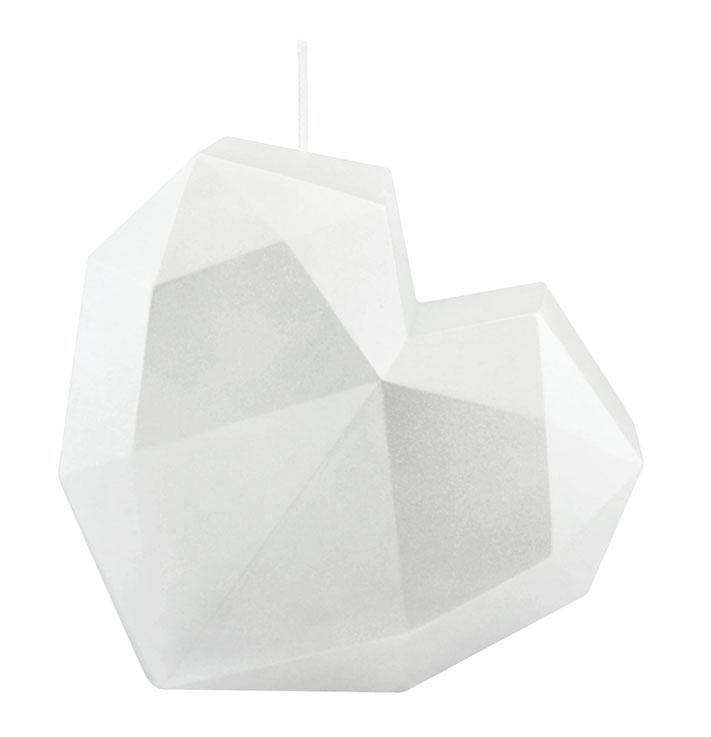 Candela sagomata a cuore grezza SKINNA con sfaccettature, bianca, 17 cm, Ø 16 cm - Made in Germany
