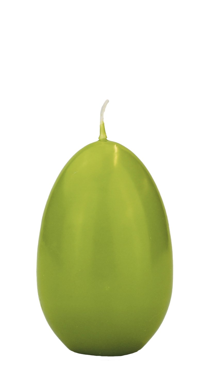 Candele a forma di uovo di Pasqua LEONITA, verdi, 9 cm, 6 cm, 16 h - Made in Germany