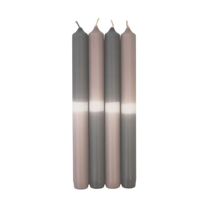 Candele da tavola Dip Dye LISSITA, 4 pezzi, grigio-grigio argento, 25 cm, Ø 2,3 cm, 11 h