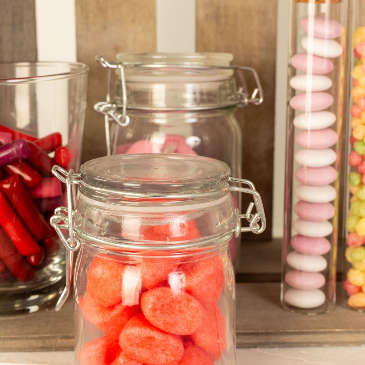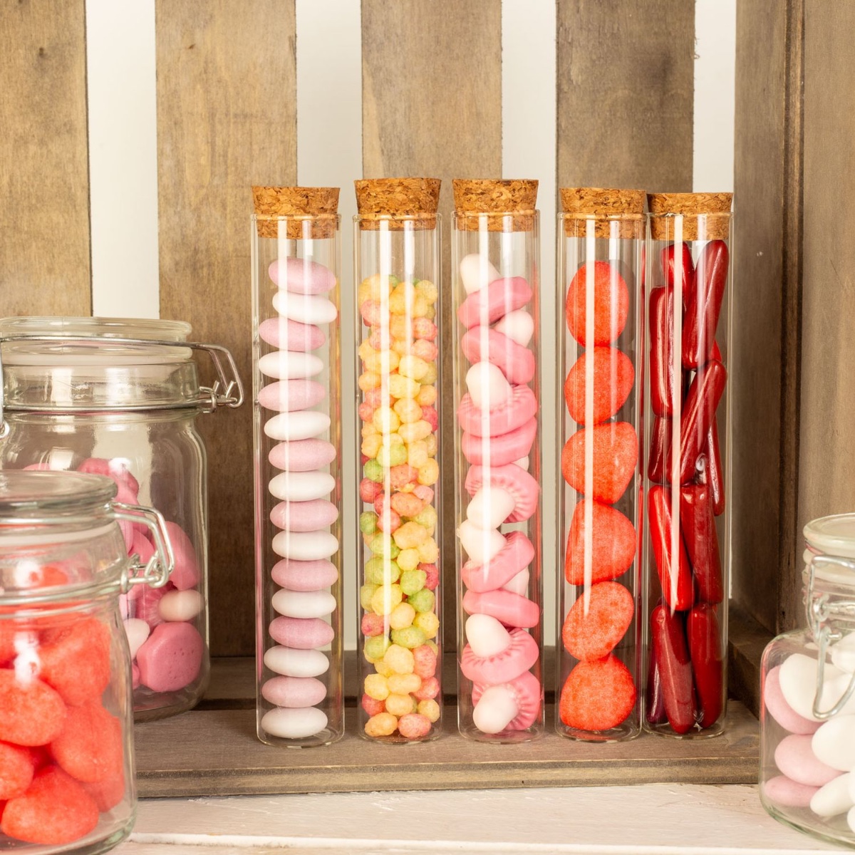 Suggerimento per il design: Basta dividere i dolci tra i diversi barattoli. Le provette possono anche essere utilizzate come regalo per le decorazioni da tavola.