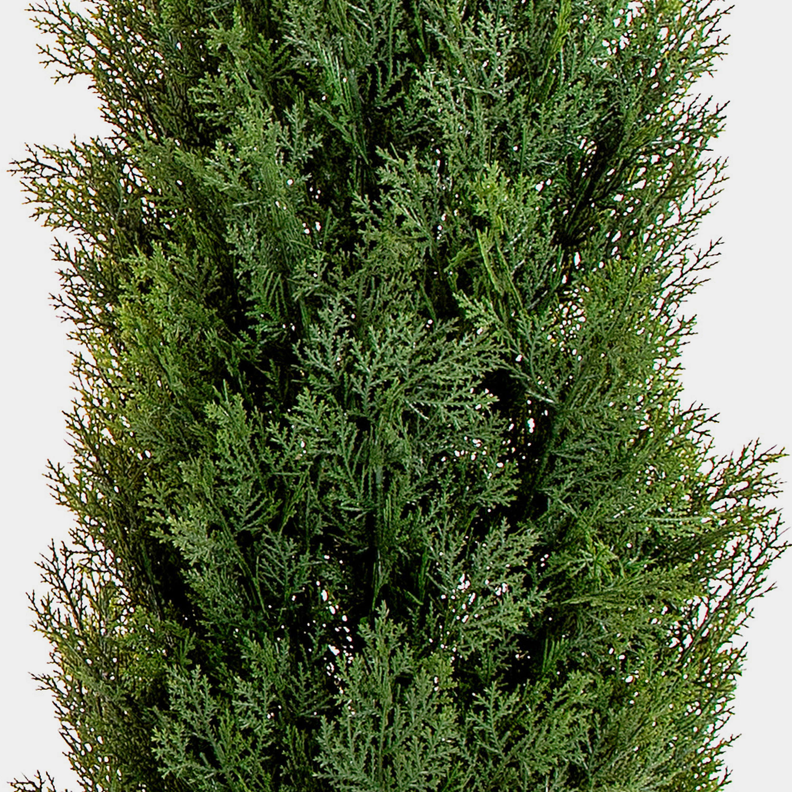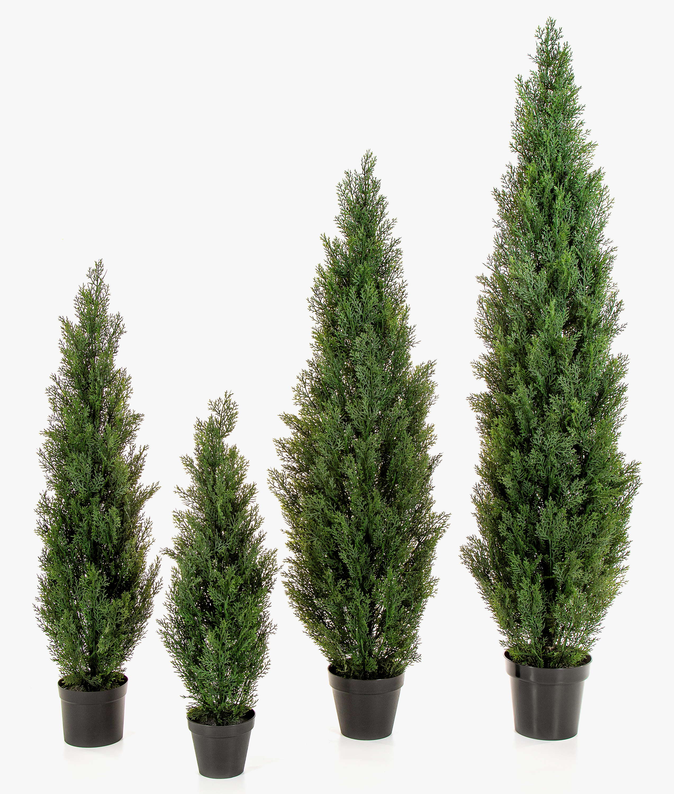 Cedro finto REVATI di colore verde. Questo albero, che è spesso usato come pianta da siepe, sembra particolarmente buono in interni come divisorio per la privacy.