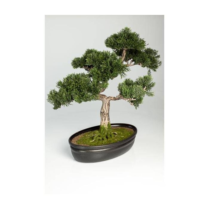 Cedro bonsai sintetico JARNO, con radici, in ciotola, verde, 40cm