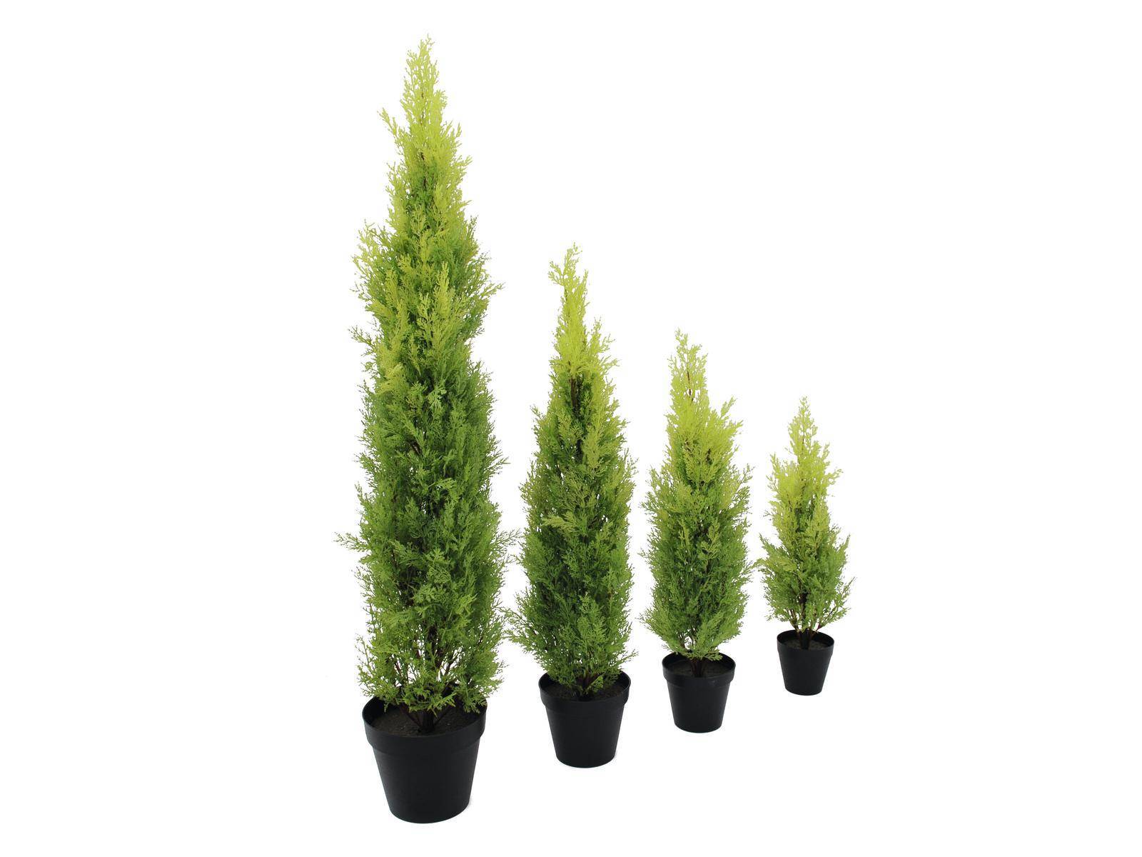 Cipresso artificiale resistente alle intemperie in vaso decorativo. Il piccolo cipresso misura un´altezza di ca. 90cm.