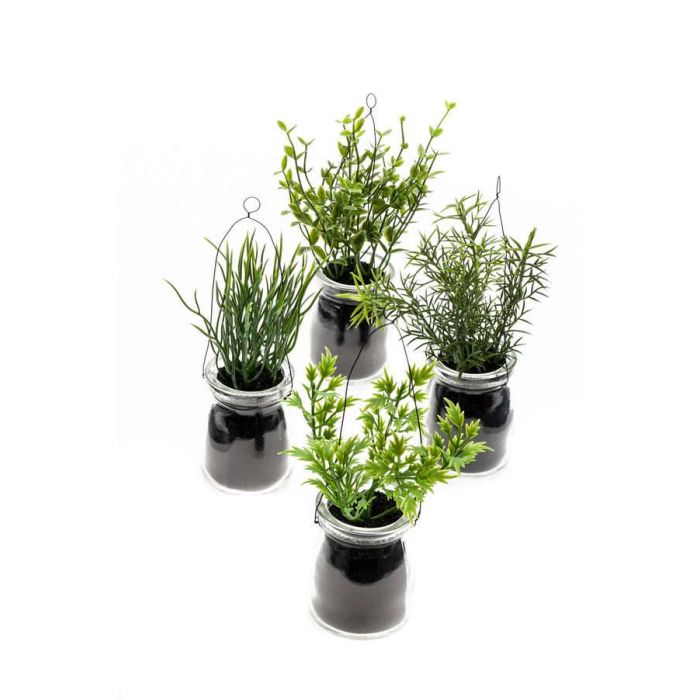 Cestino pensile di erbe artificiale LASEO in vetro, 4 pezzi, verde, 15cm