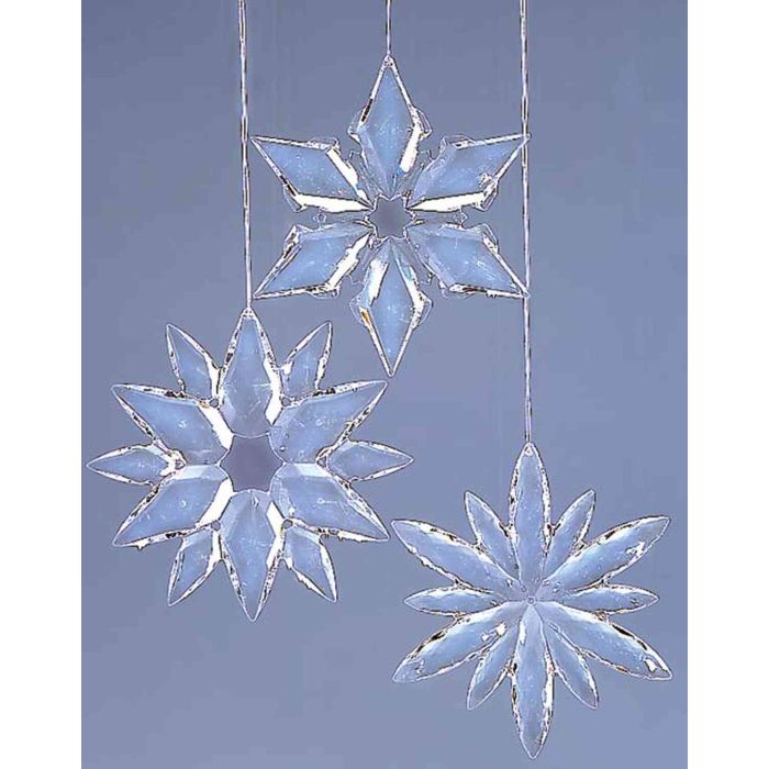 Ciondolo in acrilico a forma di fiocco di neve WOLFGANG, 3 pezzi, trasparente, Ø 11-12 cm