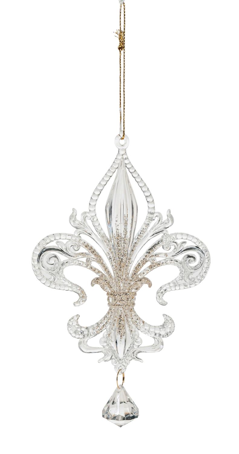 Ciondolo in acrilico di giglio araldico AZARIEL, glitter, trasparente-oro, 15cm