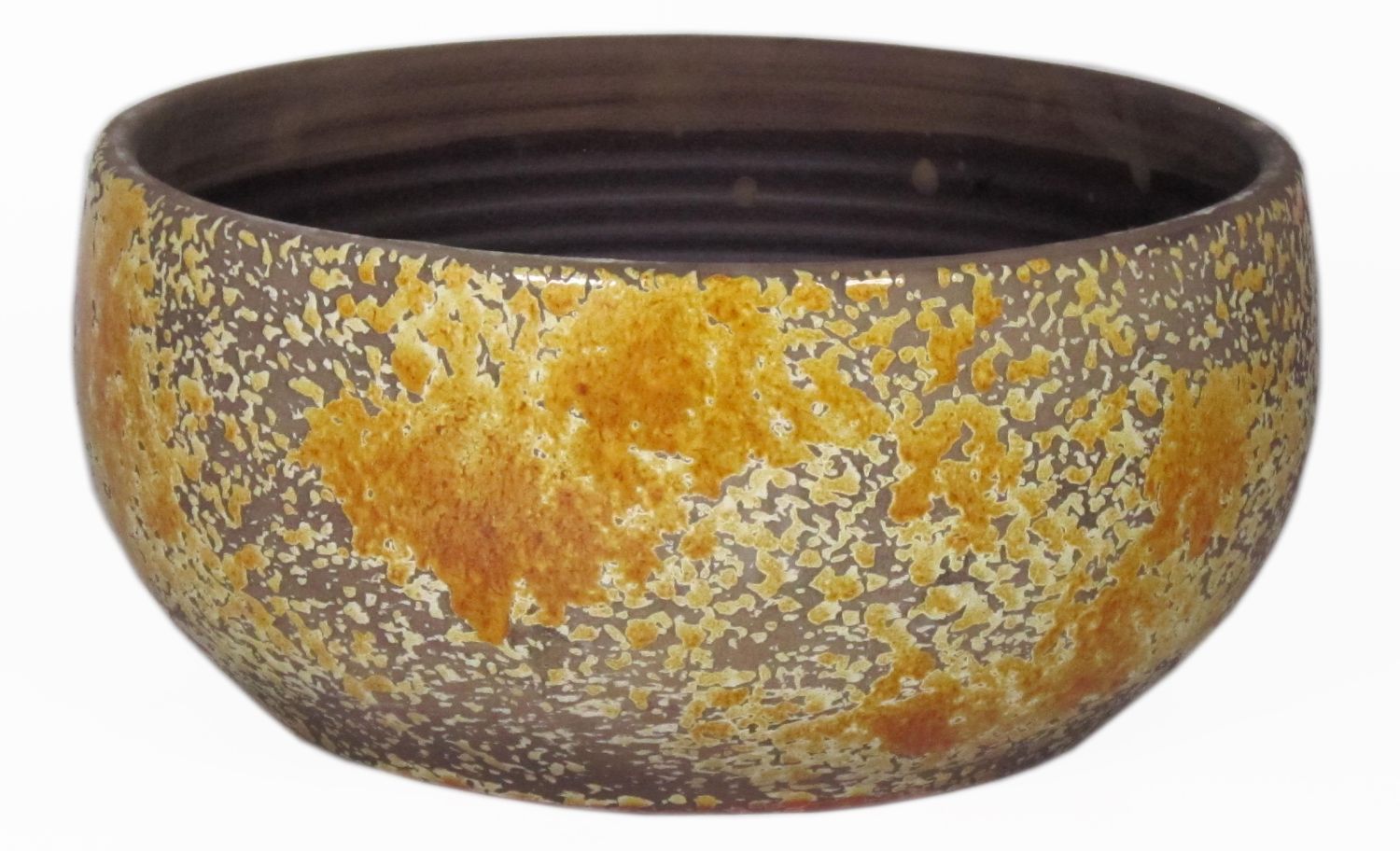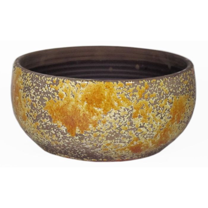 Ciotola in ceramica TSCHIL, rustica, colore sfumato, giallo ocra-marrone, 13cm, Ø28cm