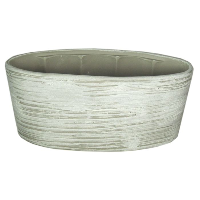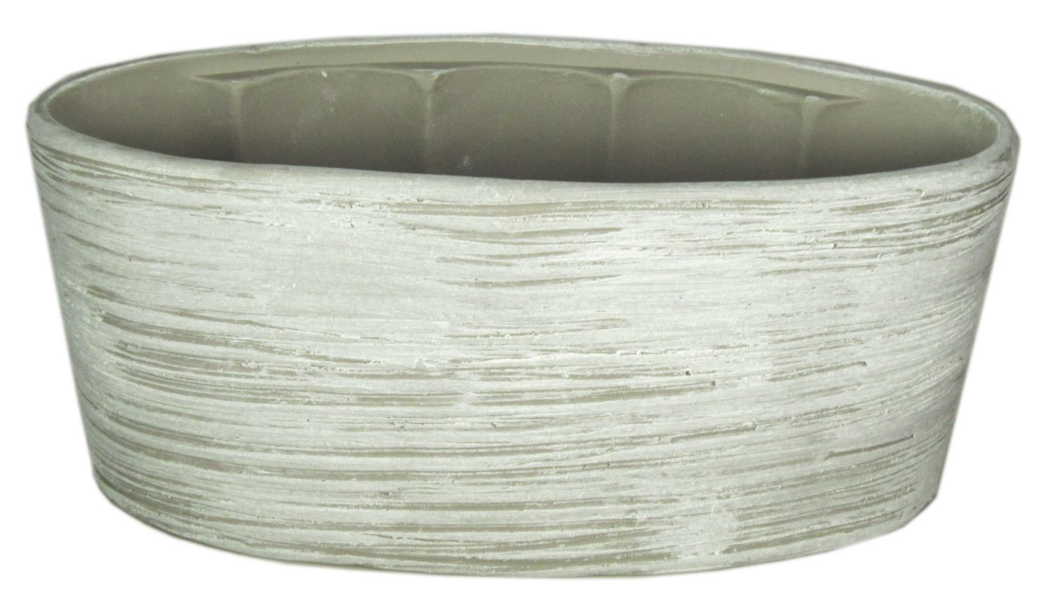 Ciotola per orchidee in ceramica ADELPHOS, ovale, scanalature, bianco-grigio chiaro, 33x15x15cm