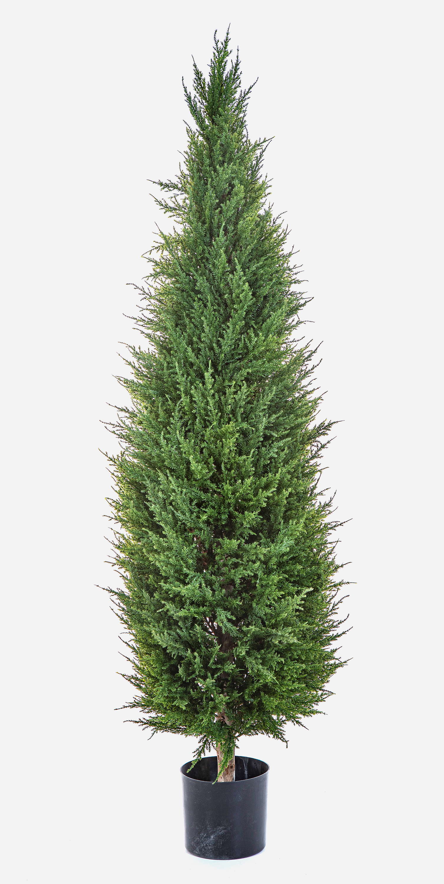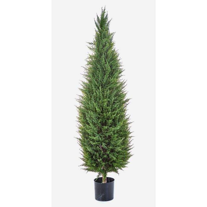 Cipresso finto MEKBUDA di colore verde. Questo albero, che è spesso usato come pianta da siepe, sembra particolarmente buono in interni come divisorio per la privacy.