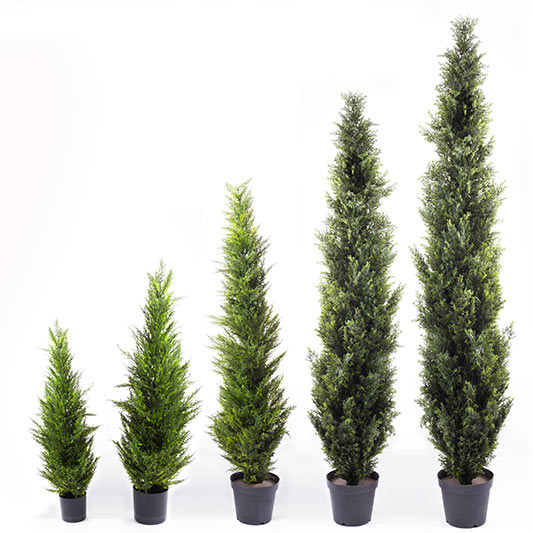 Cedro artificiale in base cementata. L'affusolato albero artificiale misura ca. 150cm in altezza.
