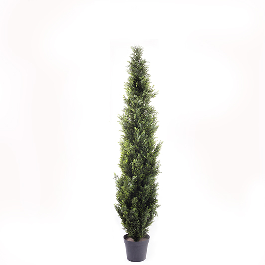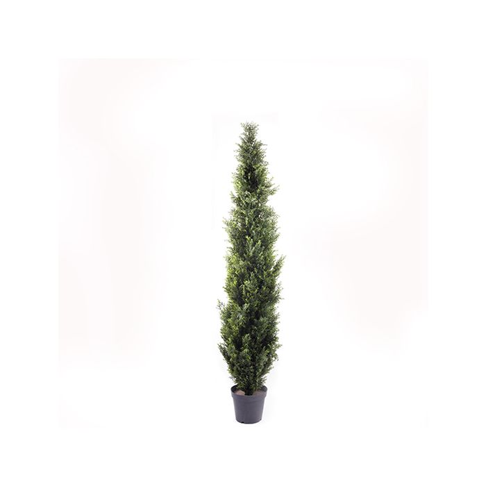 Cedro artificiale in base cementata. L'affusolato albero artificiale misura ca. 180cm in altezza.