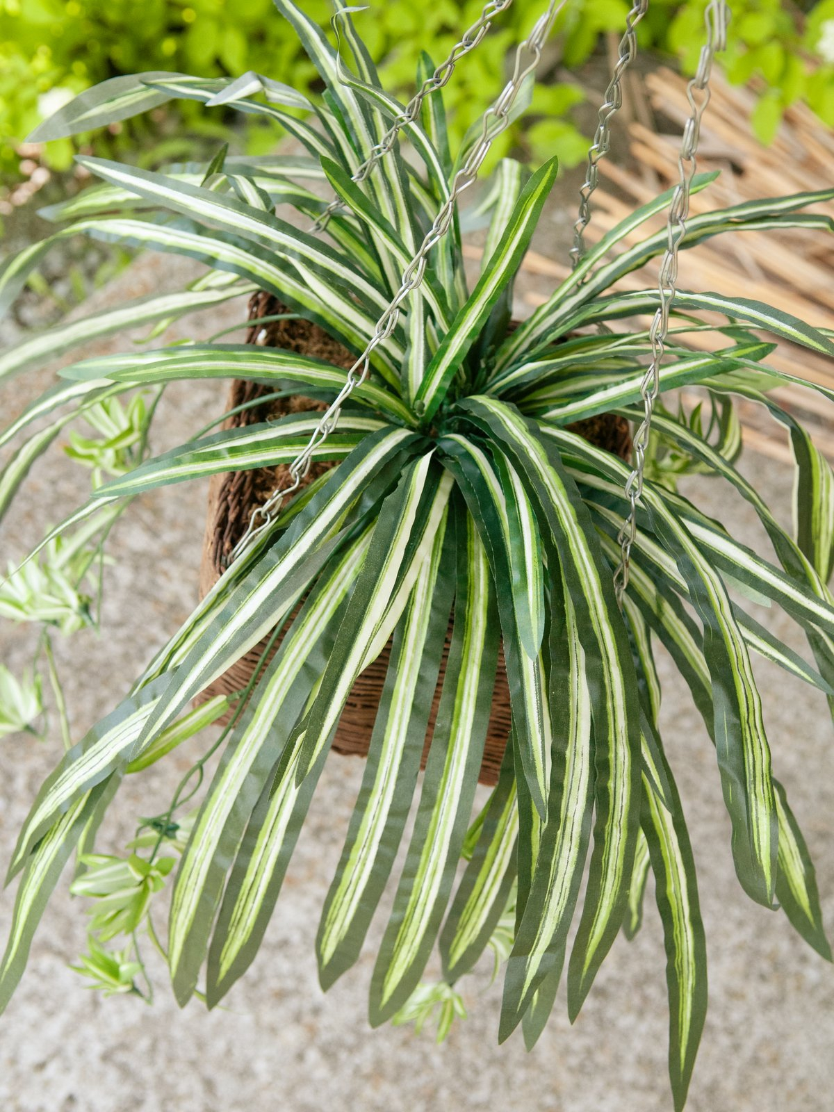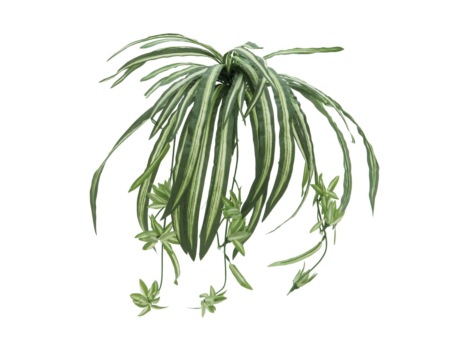 Pianta ragno artificiale (Clorofito) MALOU con fogliame dalle venature molto dettagliate e color verde-bianco. Numerose talee completano la pianta decorativa dandole un aspetto molto naturale. Il cespuglio artificiale comprensivo di stelo misura ca. 40 cm di altezza.