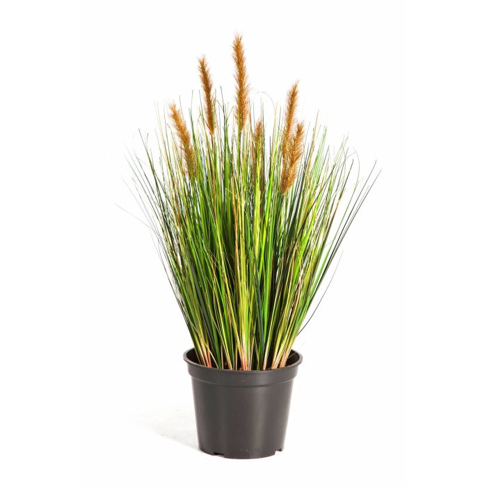 Cespuglio artificiale con 790 fili d'erba completo in vaso. Questa erba coda di volpe ha un'altezza complessiva di ca. 60 cm e 6 spighe marroni.