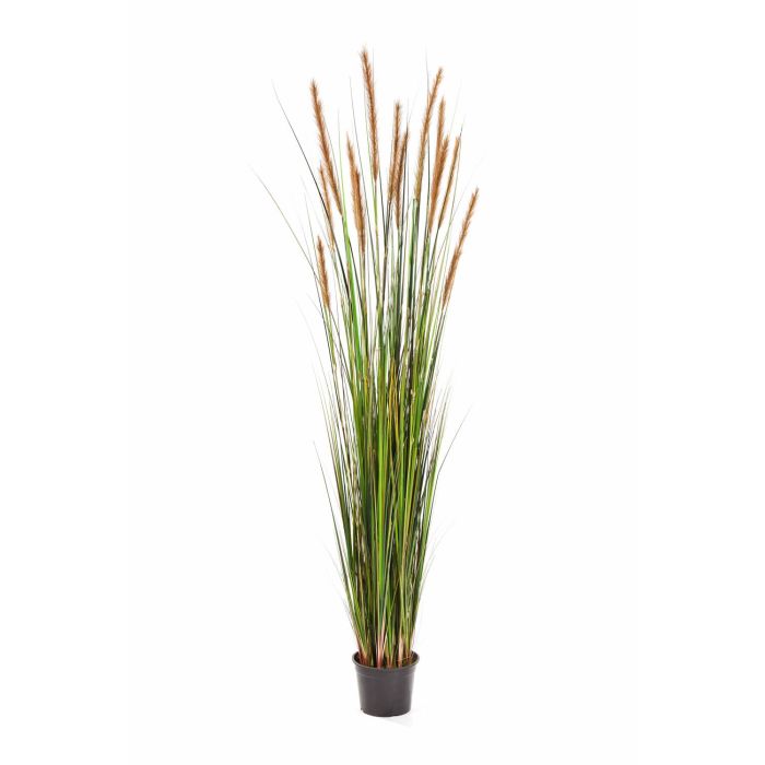 Cespuglio artificiale di erba coda di volpe (Foxtail Grass) in vaso in plastica nero per facilitarne la sistemazione in un coprivaso o fioriera a vostra scelta. L'altezza complessiva della pianta è di ca. 180 cm.