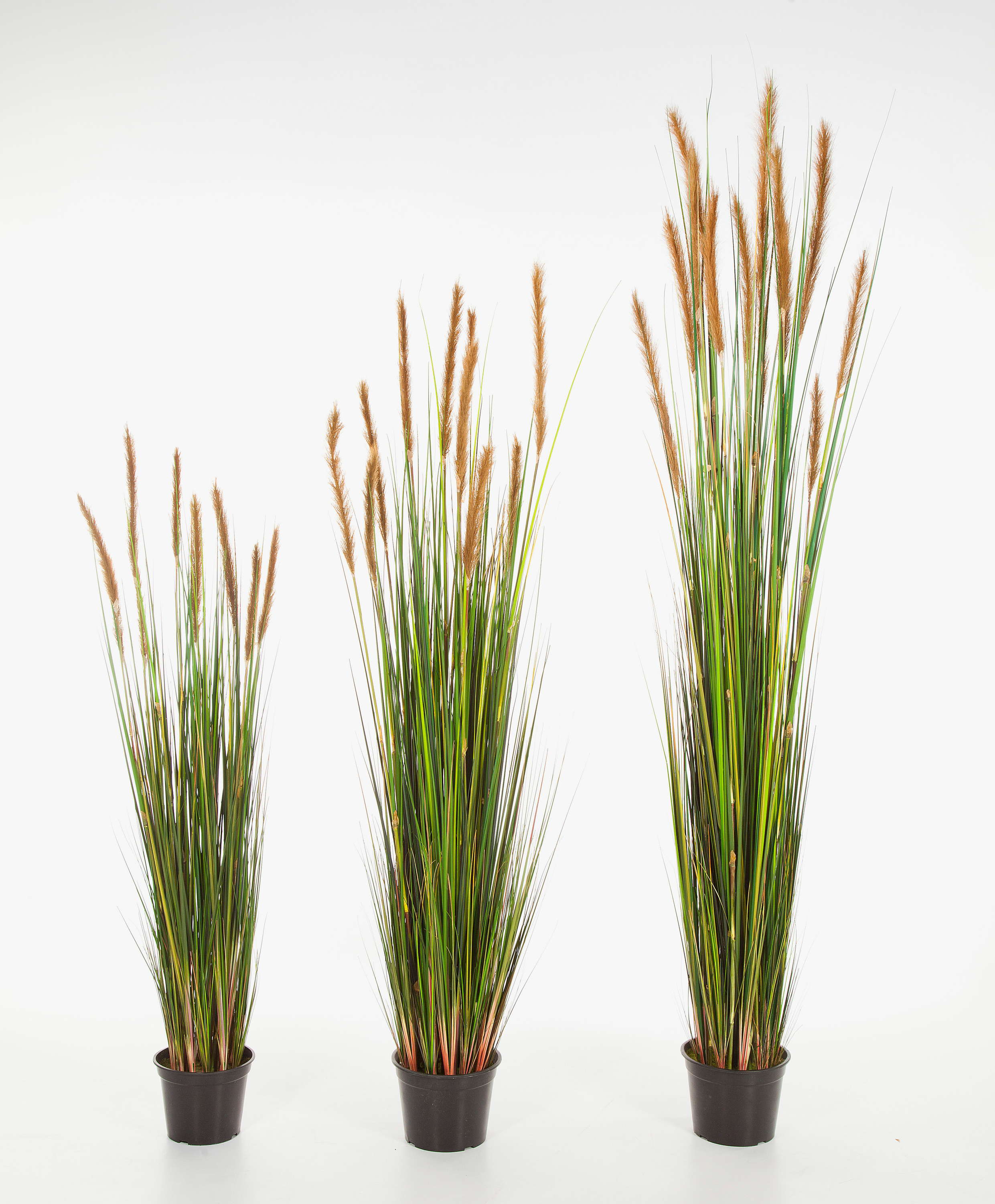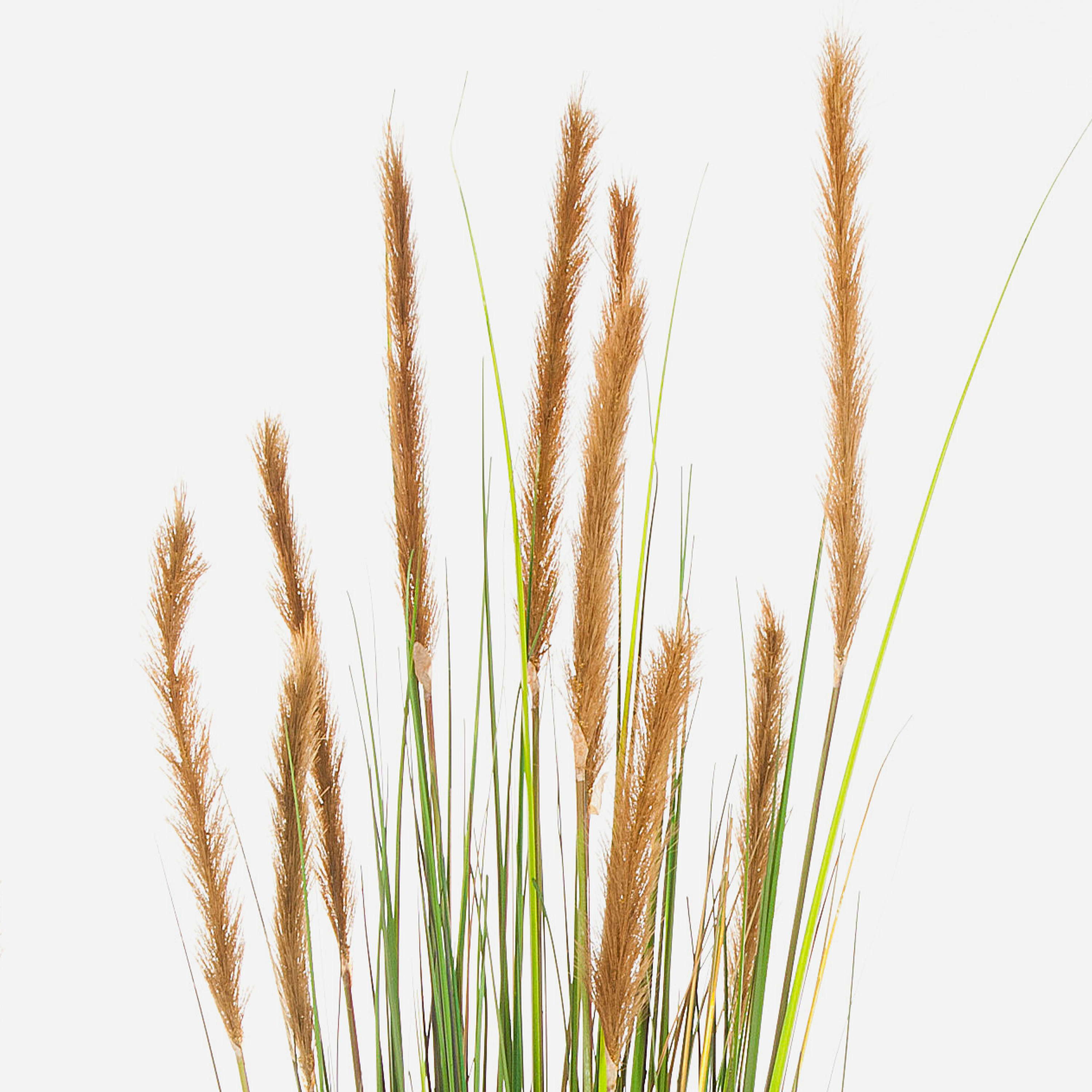 Cespuglio di Coda di Volpe alto ca. 90 cm. Questa pianta artificiale viene consegnata in un vaso di plastica nero per una semplice e rapida sistemazione in un coprivaso a vostra scelta.