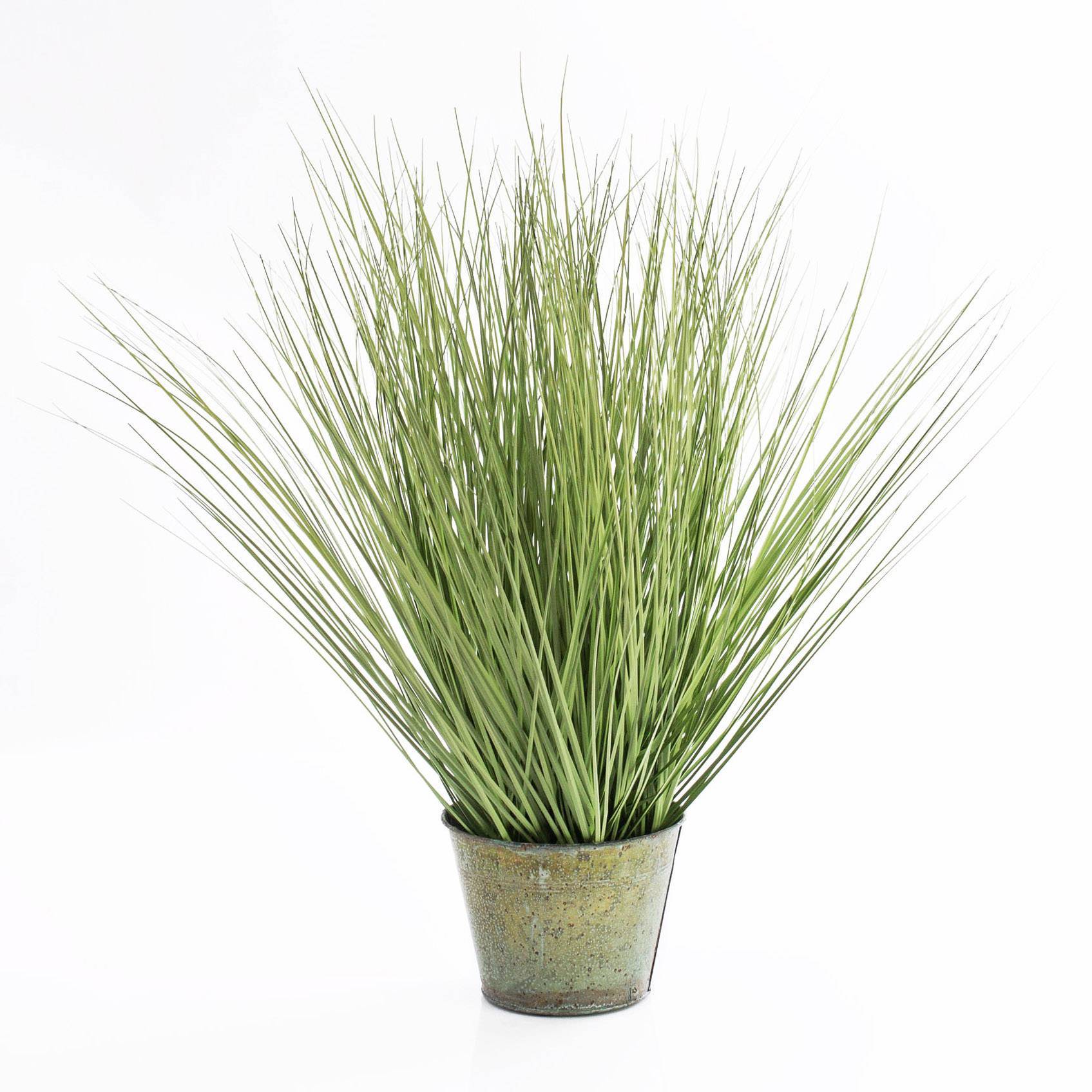Pianta erbacea artificiale con numerosi fili d'erba che ne conferiscono un aspetto particolarmente folto. Quest'erba coda di topo decorativa in vaso di metallo misura ca. 65 cm in altezza.