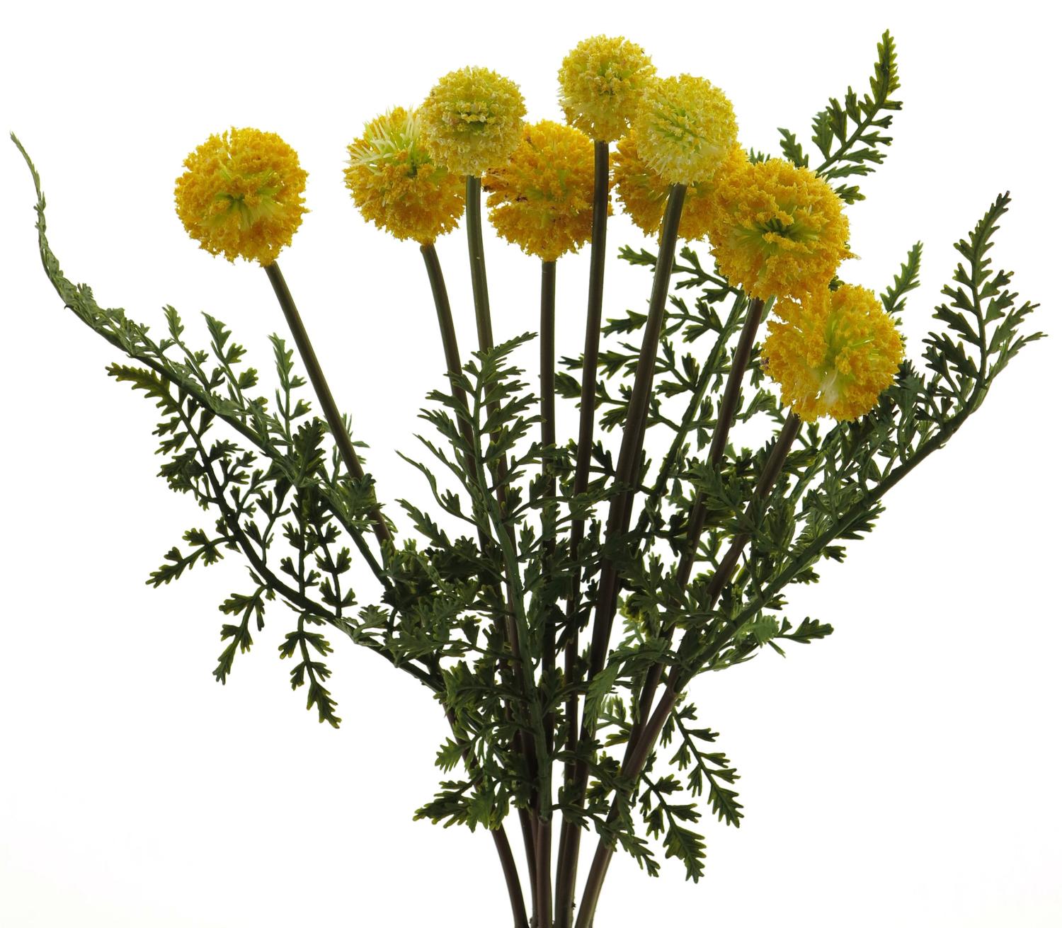 Composizione artificiale di Craspedia MANXIA con felce, stelo, giallo, 40 cm
