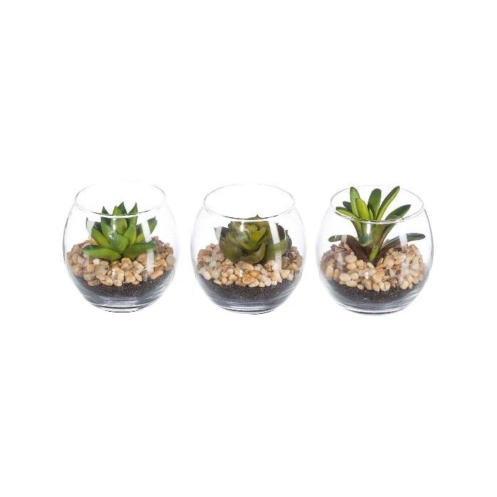 Composizione artificiale di piante grasse WINKS in vaso, 3 pezzi, verde, 7 cm, Ø 7,5 cm