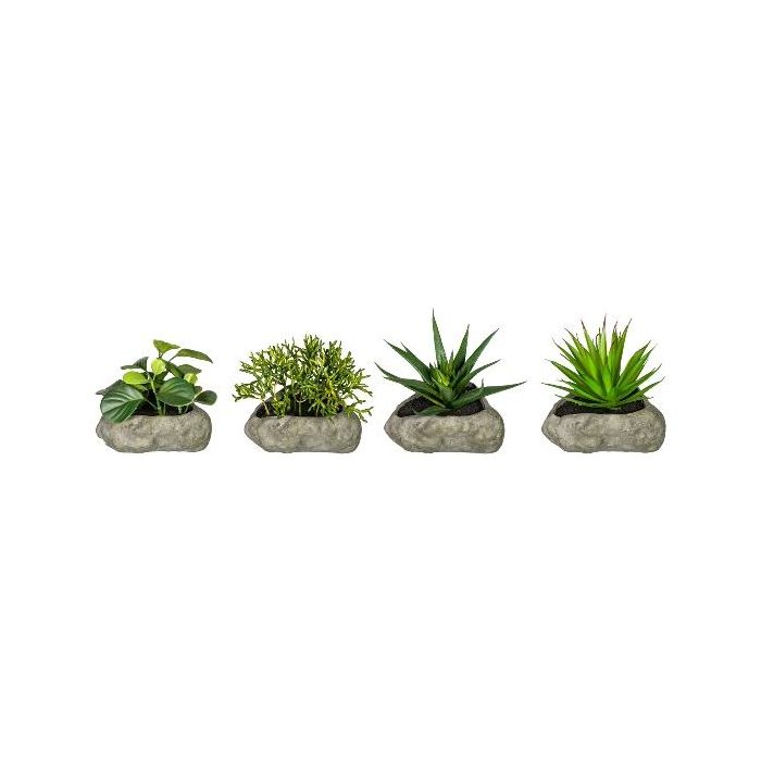 Composizione artificiale di piante succulente TASTIKE in vaso di poliresina, 4 pezzi, verde, 12-15cm