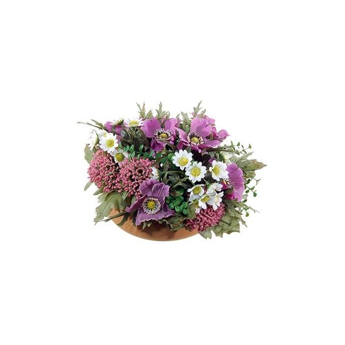 Composizione floreale artificiale di Anemone, Astilbe IGNATIO su piatto, viola-bianco, 17cm, Ø28cm