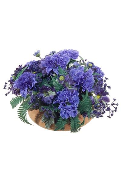 Composizione floreale artificiale di Garofani, margherite IAKOBA su piatto, blu, 17cm, Ø28cm