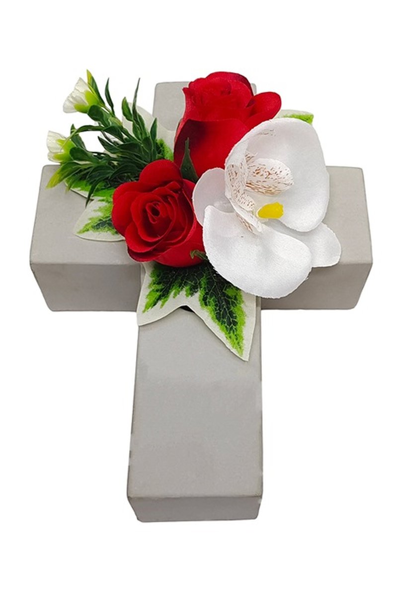 - La composizione floreale su una croce è un bellissimo arricchimento, ad esempio per la decorazione di una tomba, si prega di notare che non possiamo dare alcuna garanzia per la longevità e la durata per l'uso all'aperto, i fiori artificiali possono scolorire a causa dei raggi UV, diventare fragili o strapparsi a causa del vento!