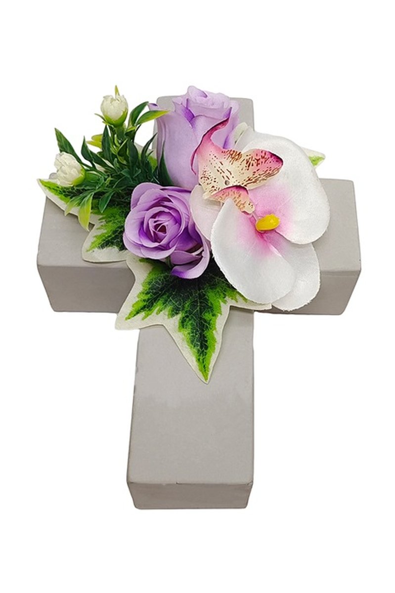 Composizione floreale artificiale di Orchidea Phalaenopsis, rosa ARLOMA, croce, bianco-viola, 20x15x11cm