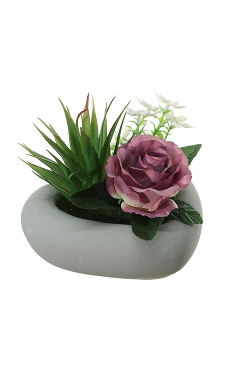Composizione floreale artificiale di rosa, Agave BEVIS, vaso decorativo, bianco-viola, 14cm, Ø18cm