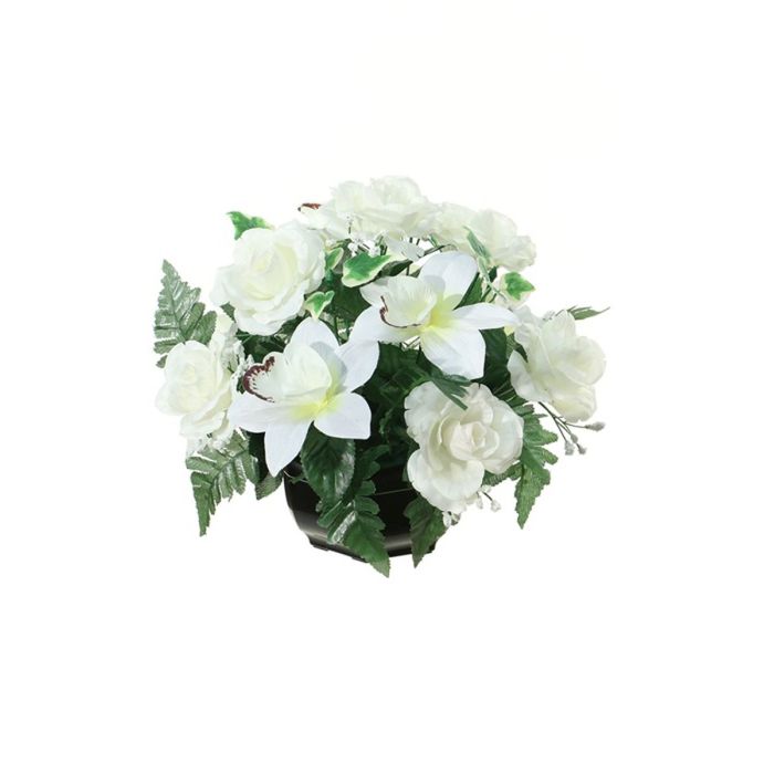 Composizione floreale artificiale di rosa, orchidea cymbidium YAMMA, vaso decorativo, crema, 26cm, Ø27cm