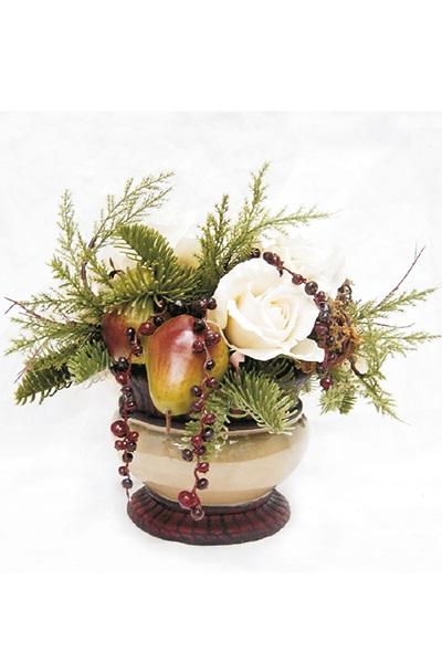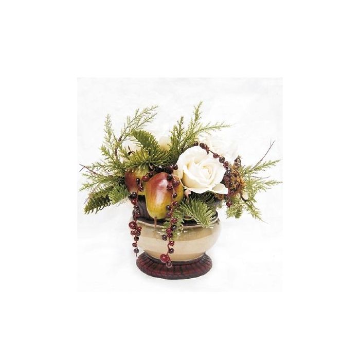 - Con rose, ortensie, pere, bacche, palline di ramoscelli e rami di abete