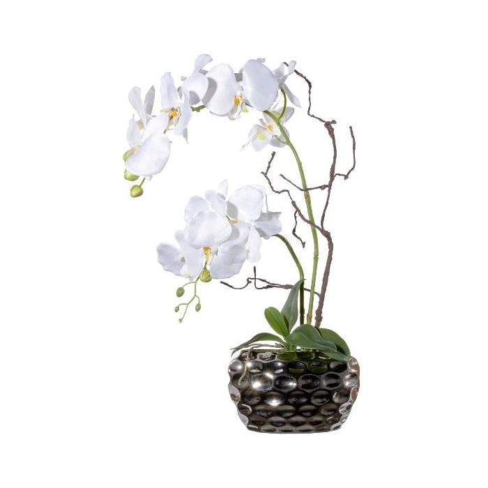 Composizione floreale artificiale orchidea salice contorto TICHIO, vaso decorativo, radici, bianco, 55 cm