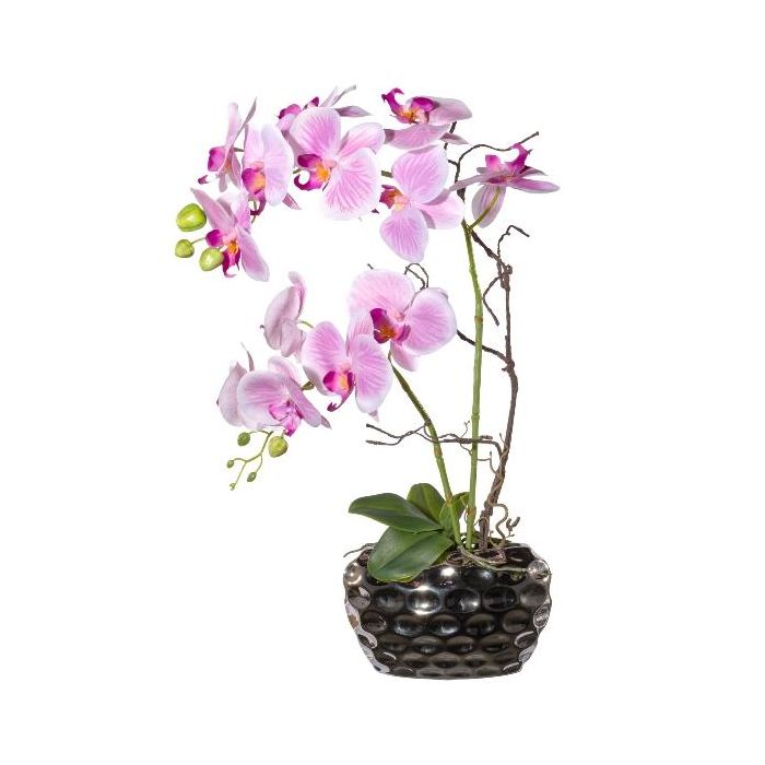 Composizione floreale artificiale orchidea salice contorto TICHIO, vaso decorativo, radici, rosa, 55 cm