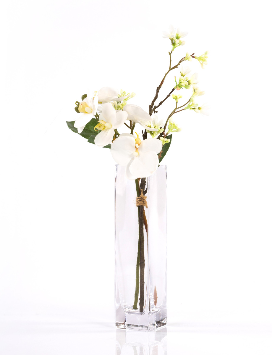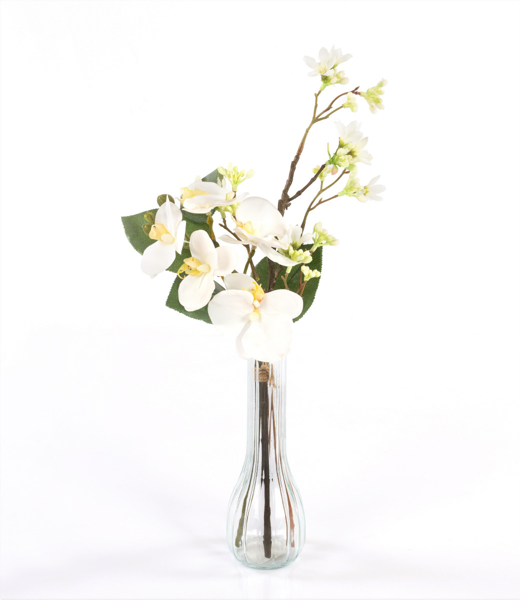 Composizione floreale di orchidee artificiali ANOUK con accessori, crema, 45cm, Ø15cm