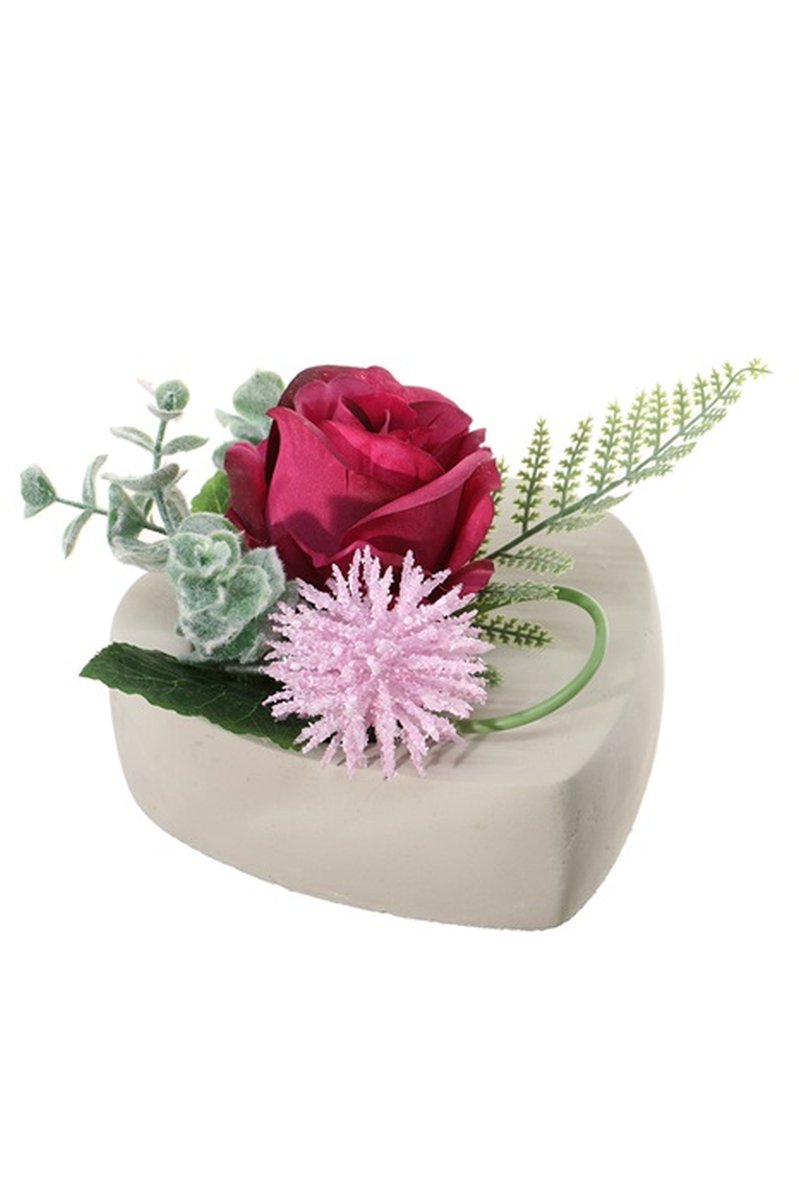 Composizione floreale finta di rosa, Allium EIVOR, vaso decorativo, rosa bordeaux, 12 cm, Ø17 cm