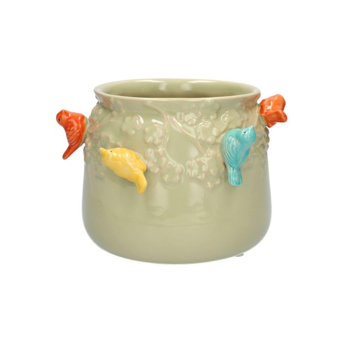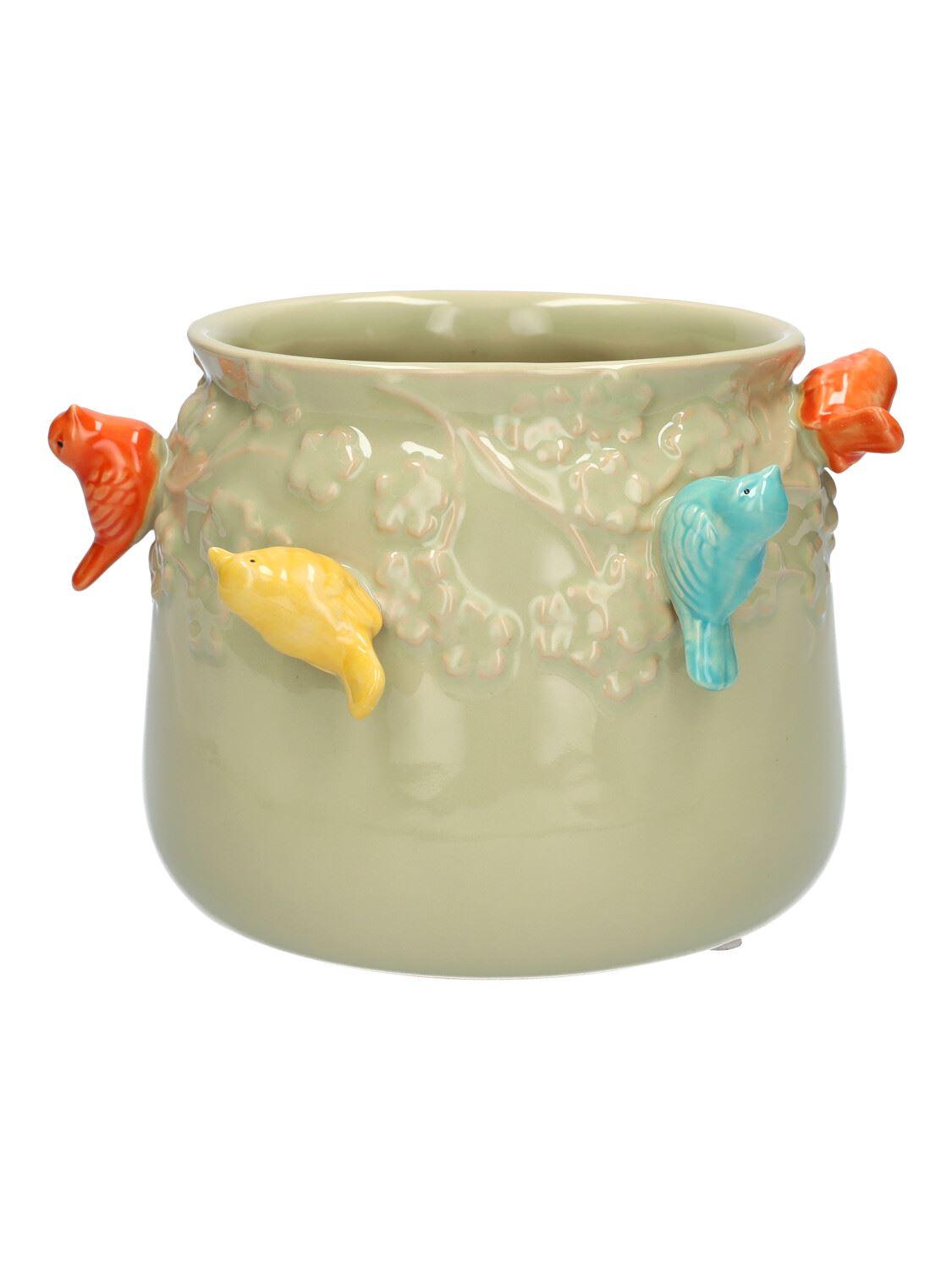 Coprivaso BIRDIE in ceramica, con uccelli 3D, verde-arancione-giallo-blu, 11 cm, Ø 13,5 cm