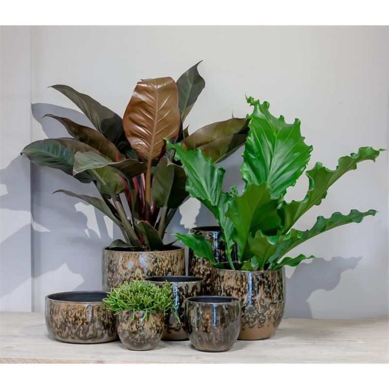 Coprivaso ELIEL in ceramica, maculato, marrone-blu, 28 cm, Ø 28 cm