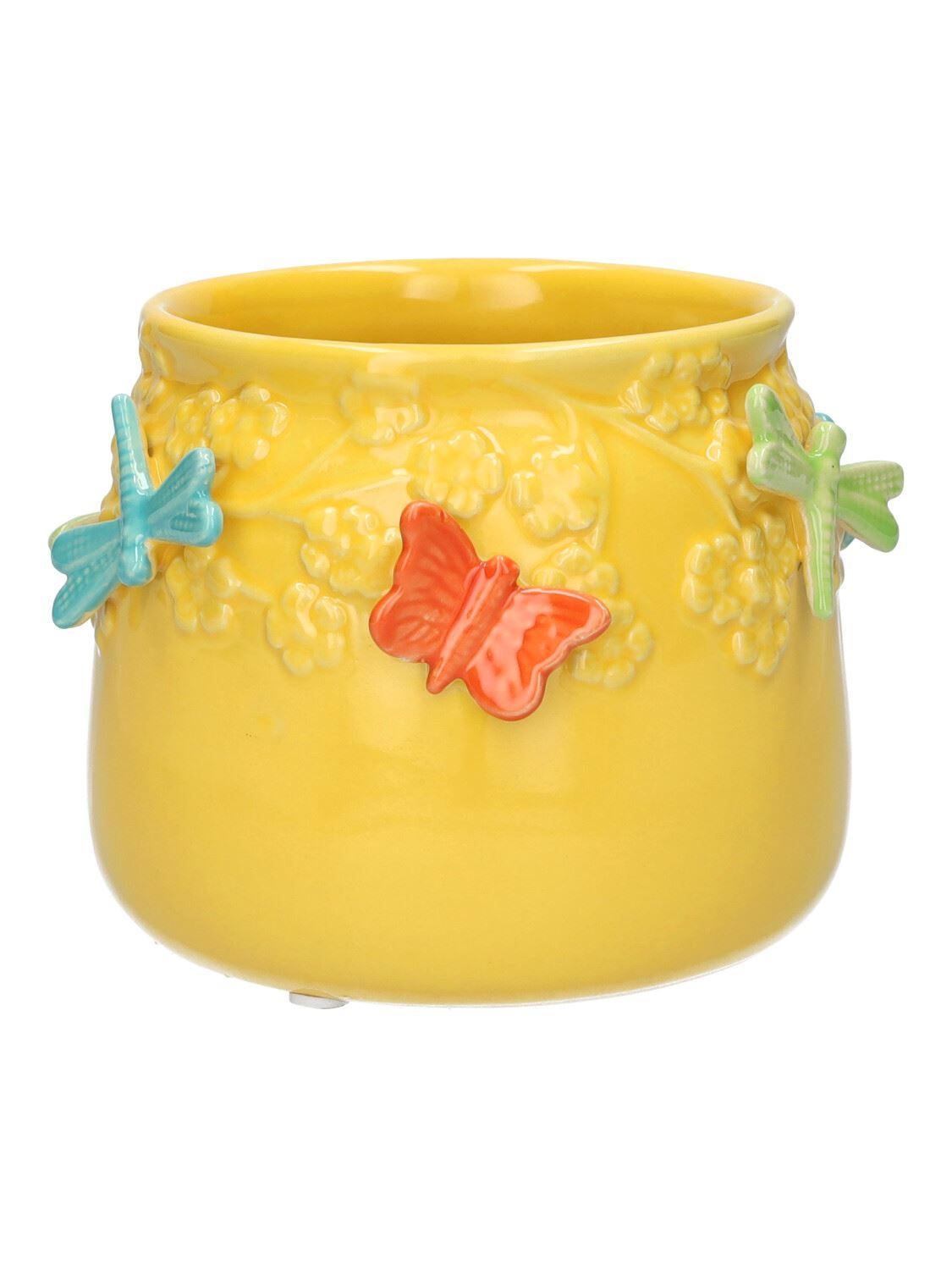 Coprivaso KIMANA in ceramica, farfalle e libellule 3D, giallo-arancione-blu-verde, 11 cm, Ø 13,5 cm