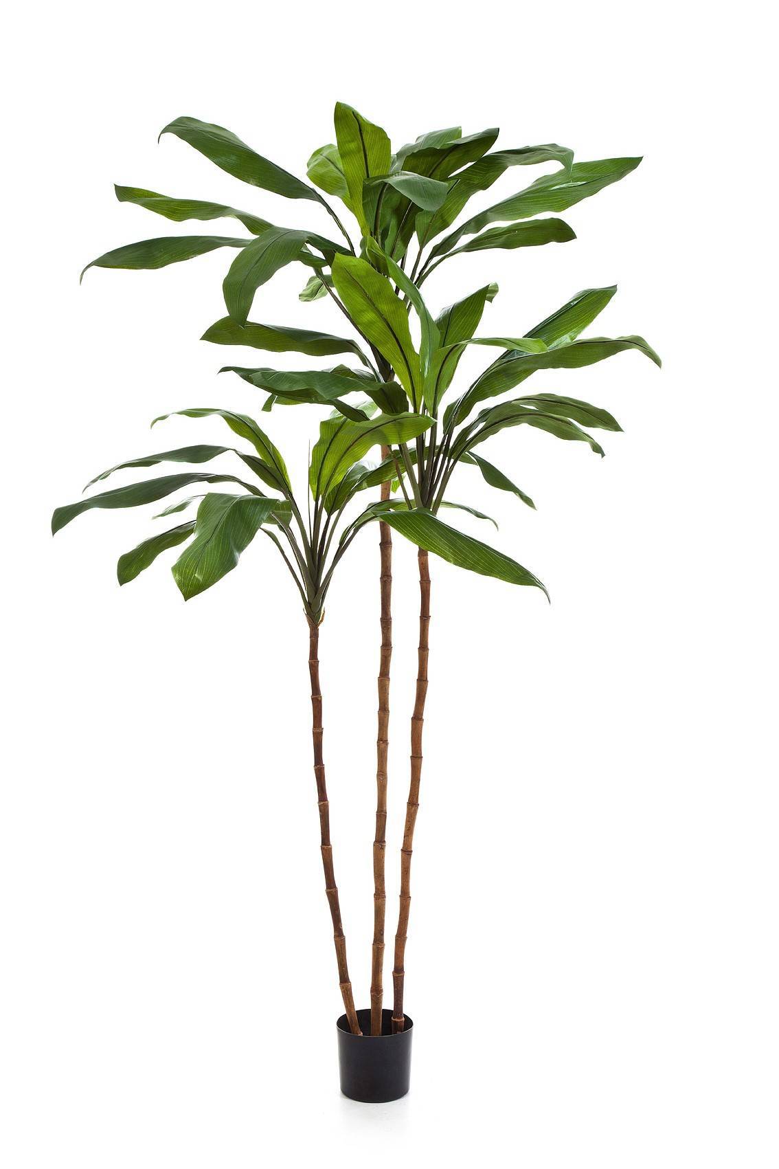 La pianta ornamentale KAIA si compone di 3 fusti sottili, marroni e naturali, e foglie lunghe di forma ovale e di colore verde. La pianta ha un'altezza di ca. 240 cm ed è perfetta per decorare una Spa.