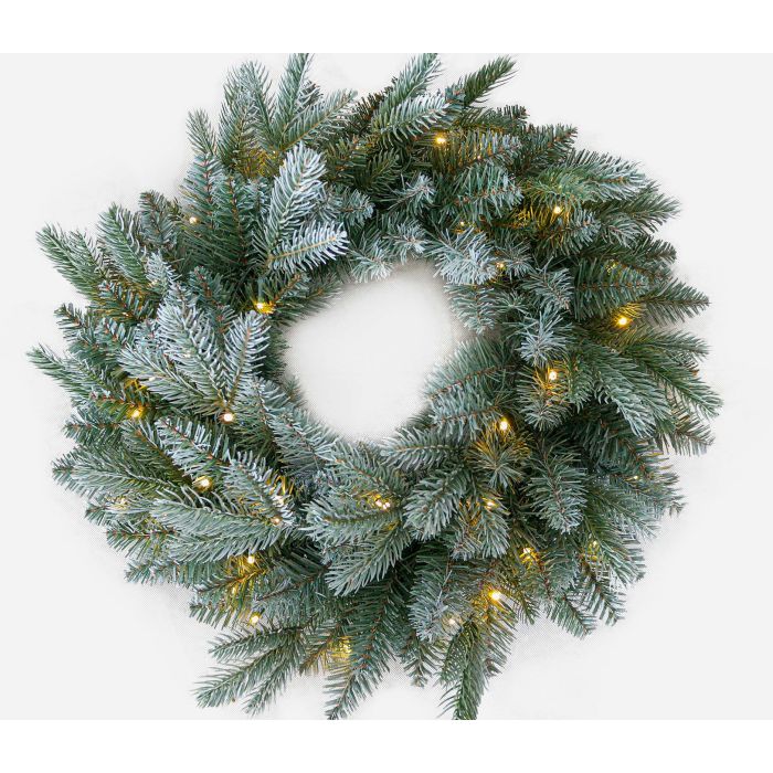 Corona artificiale di abete BUFFALO, blu, ghiacciato, LEDs, Ø60cm
