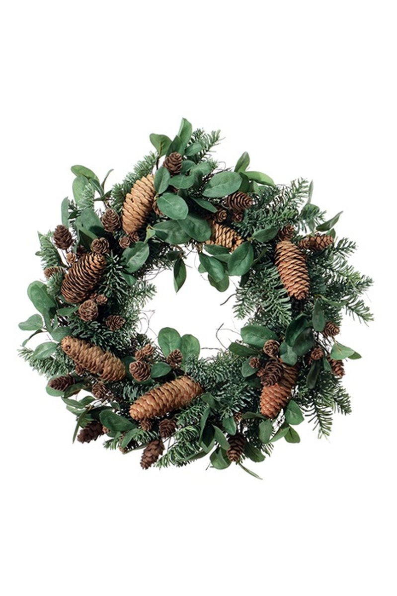 Corona artificiale di abete, stachys LIRONA con pigne, verde, Ø35cm