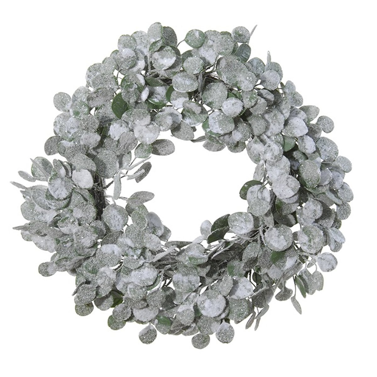 Corona artificiale di eucalipto PHONG, ghiacciata, bianco-verde, Ø45cm