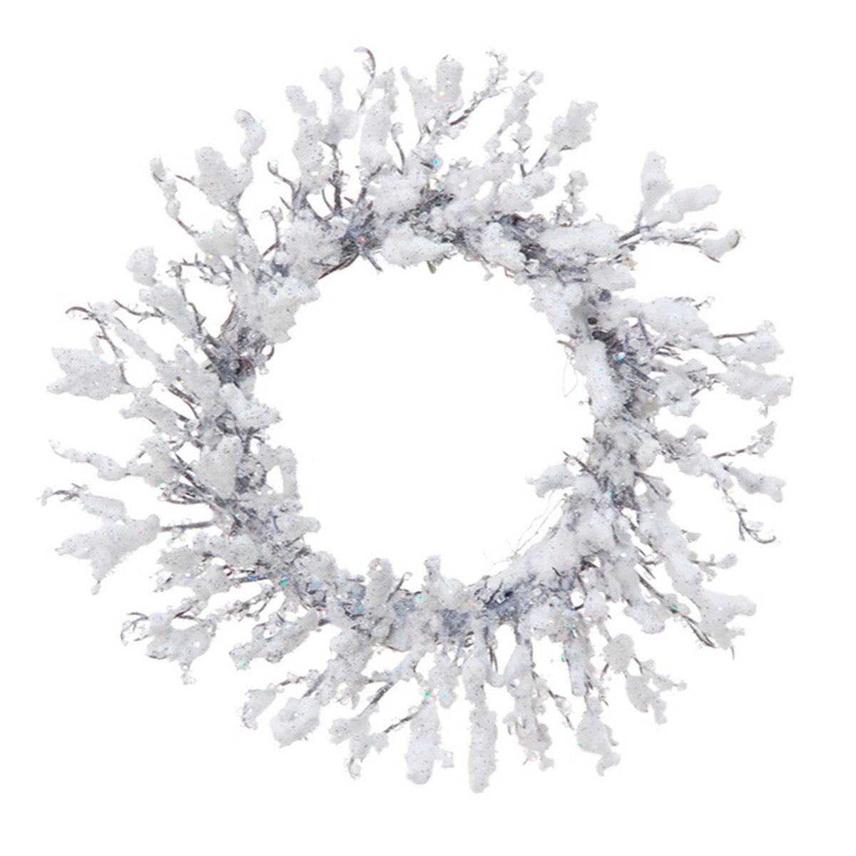 Corona artificiale di salice EZIO, innevata, bianca, Ø30cm