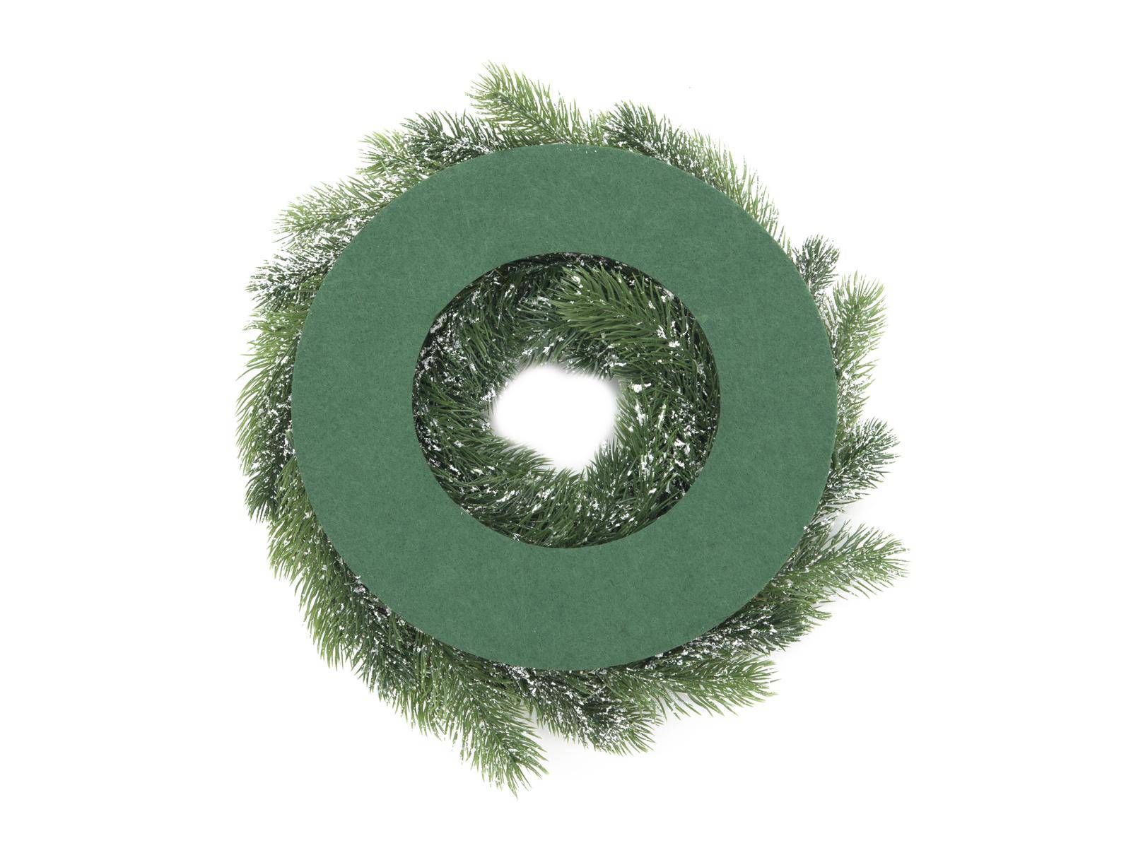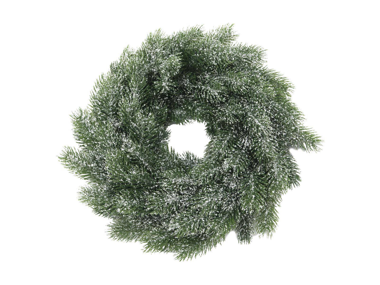 Corona artificiale realizzata con un fitto intreccio di rami di abete coperti di aghifoglie innevati. Questa ghirlanda decorativa ha un diametro esterno di ca. 45 cm ed è perfetta come idea decorativa invernale o natalizia.