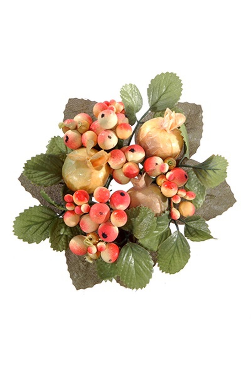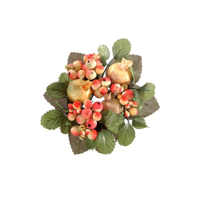 Corona decorativa di candele STELLAN con symphoricarpos, boccioli, arancione-beige, Ø10cm