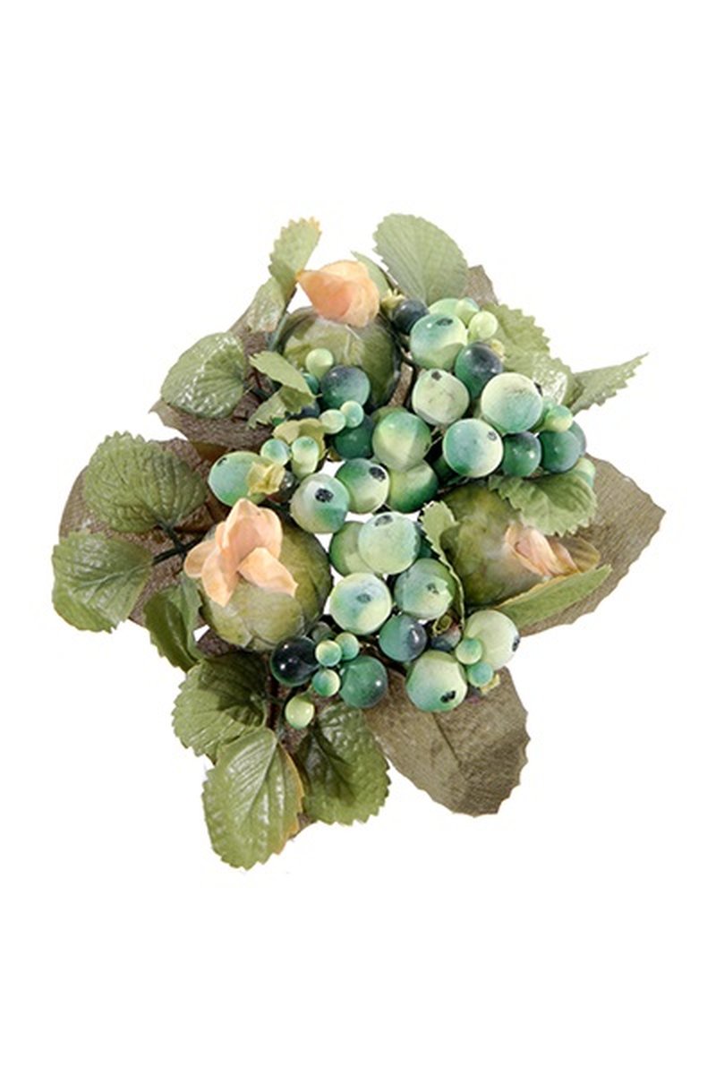 Corona decorativa di candele STELLAN con symphoricarpos, boccioli, verde-blu, Ø10cm
