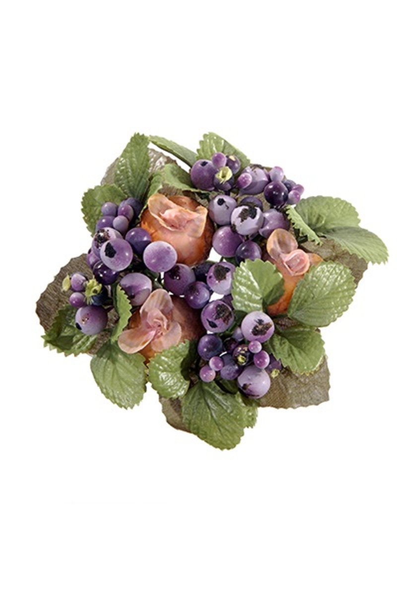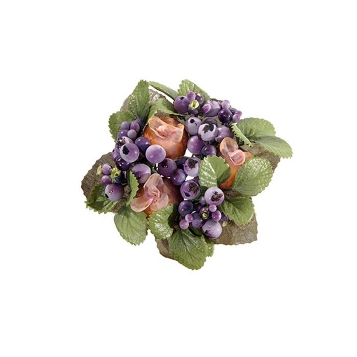 Corona decorativa di candele STELLAN con symphoricarpos, boccioli, viola-salmone, Ø10cm
