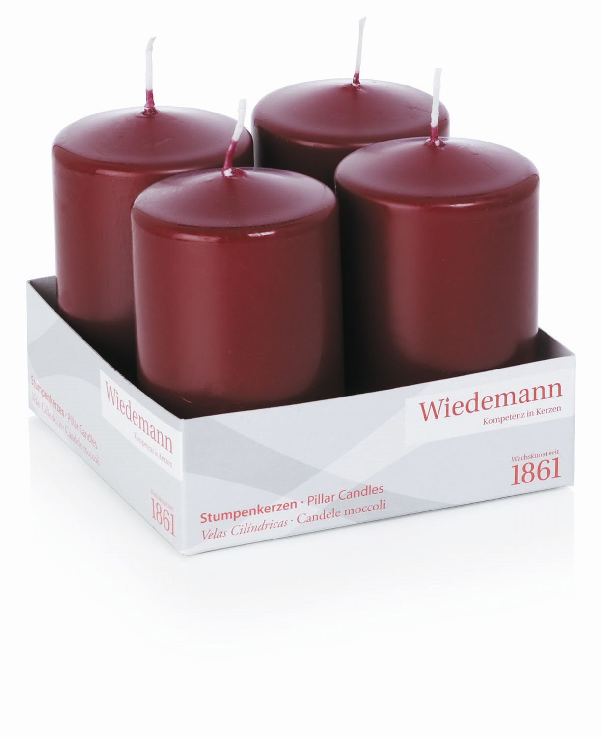 Corona dell'Avvento con candele JENARO, 4 pezzi, bordeaux, 10 cm, Ø6 cm, 33h - Made in Germany