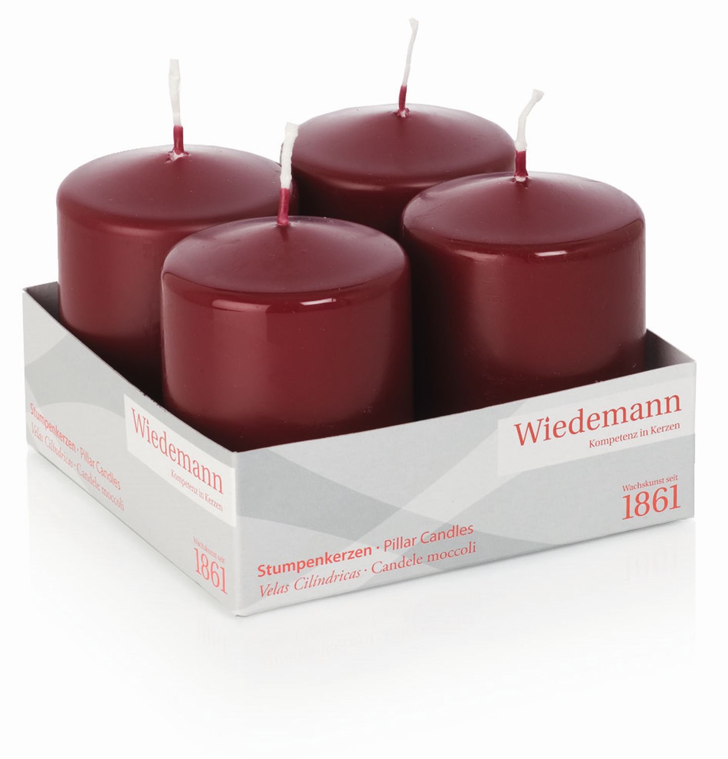 Corona dell'Avvento con candele JENARO, 4 pezzi, bordeaux, 8 cm, Ø6 cm, 29 h - Made in Germany