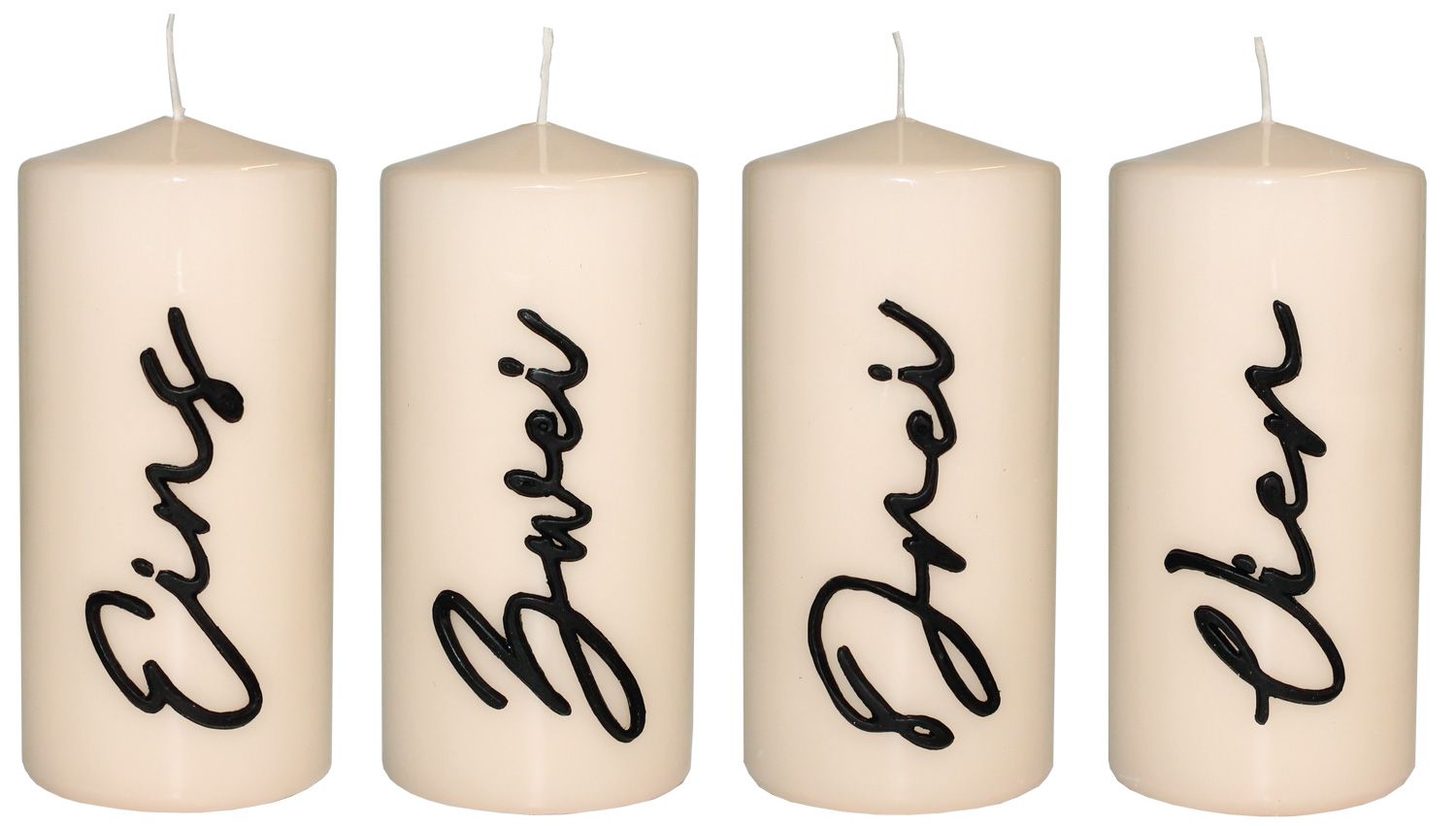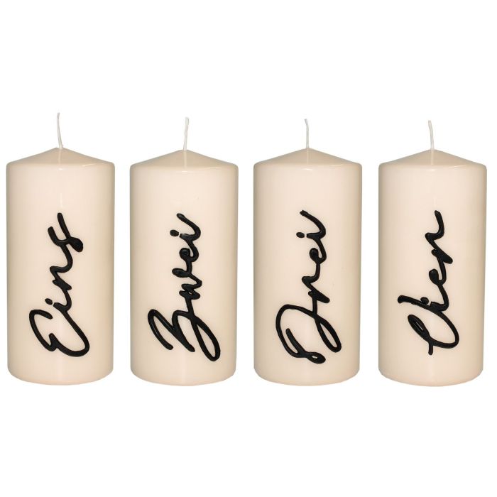 Corona dell'Avvento con candele PAULINO con numeri, 4 pezzi, crema lucido, 15 cm, Ø7 cm, 63 h - Made in Germany